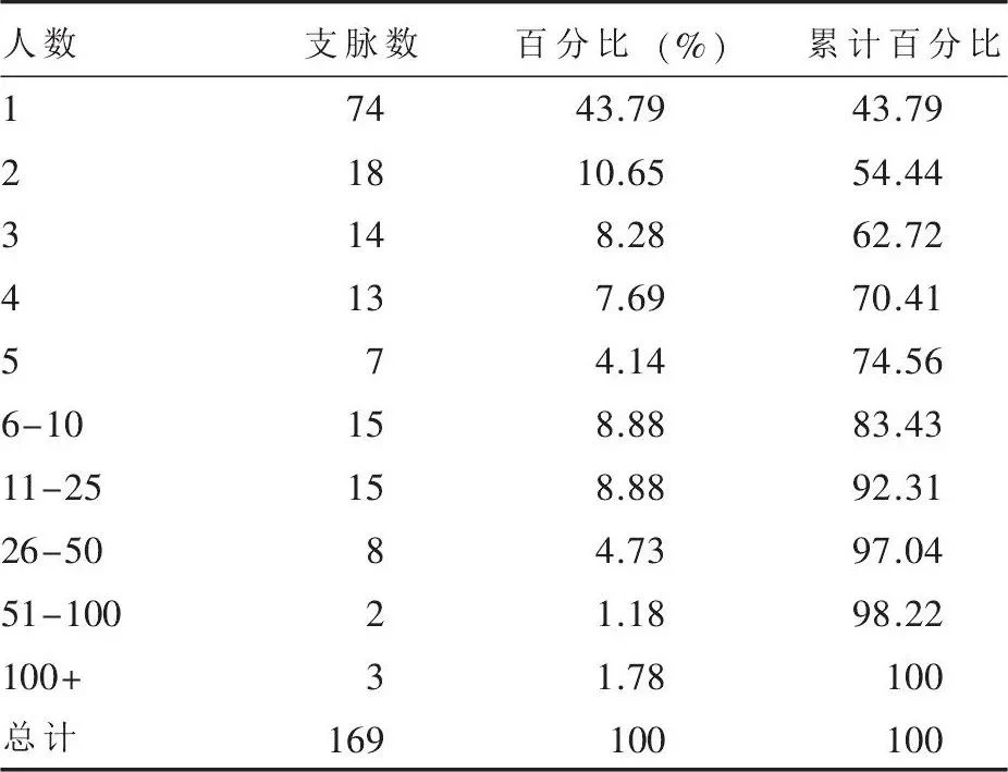表1 各个支脉包含的人数
