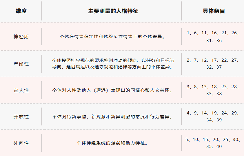 中国大五人格问卷简式版(CBF–PI–B):https://mp.weixin.qq.com/s/eTLsp8O9VK7y1x26e7_oNQ