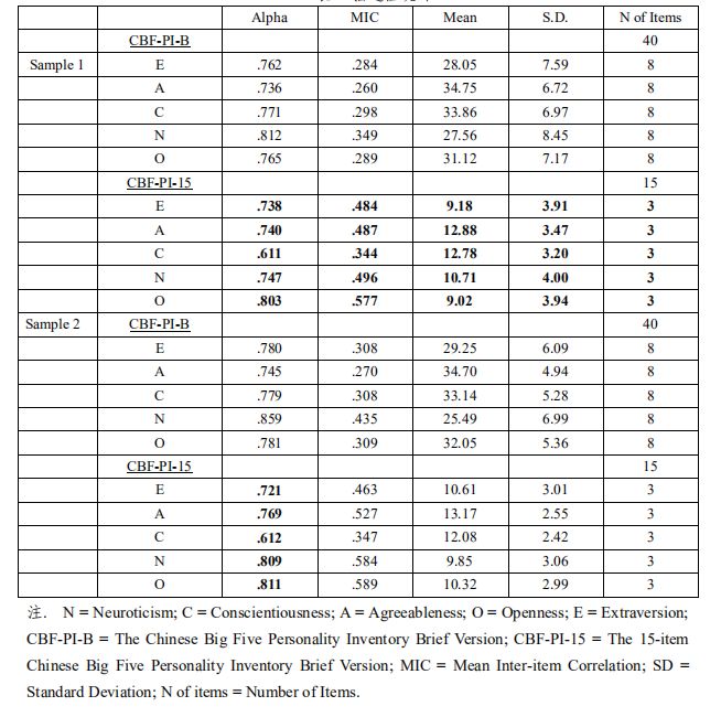 尽管CBF-PI-B只有40个题目,但当研究只是把测量大五人格作为一个变量时,40个题目仍然较多。为此,我们通过一系列程序从CBF-PI-B中挑选了部分条目(15个)编制一个具有合理结构和可接受心理测量特性的极简版中国大五人格问卷(CBF-PI-15)。