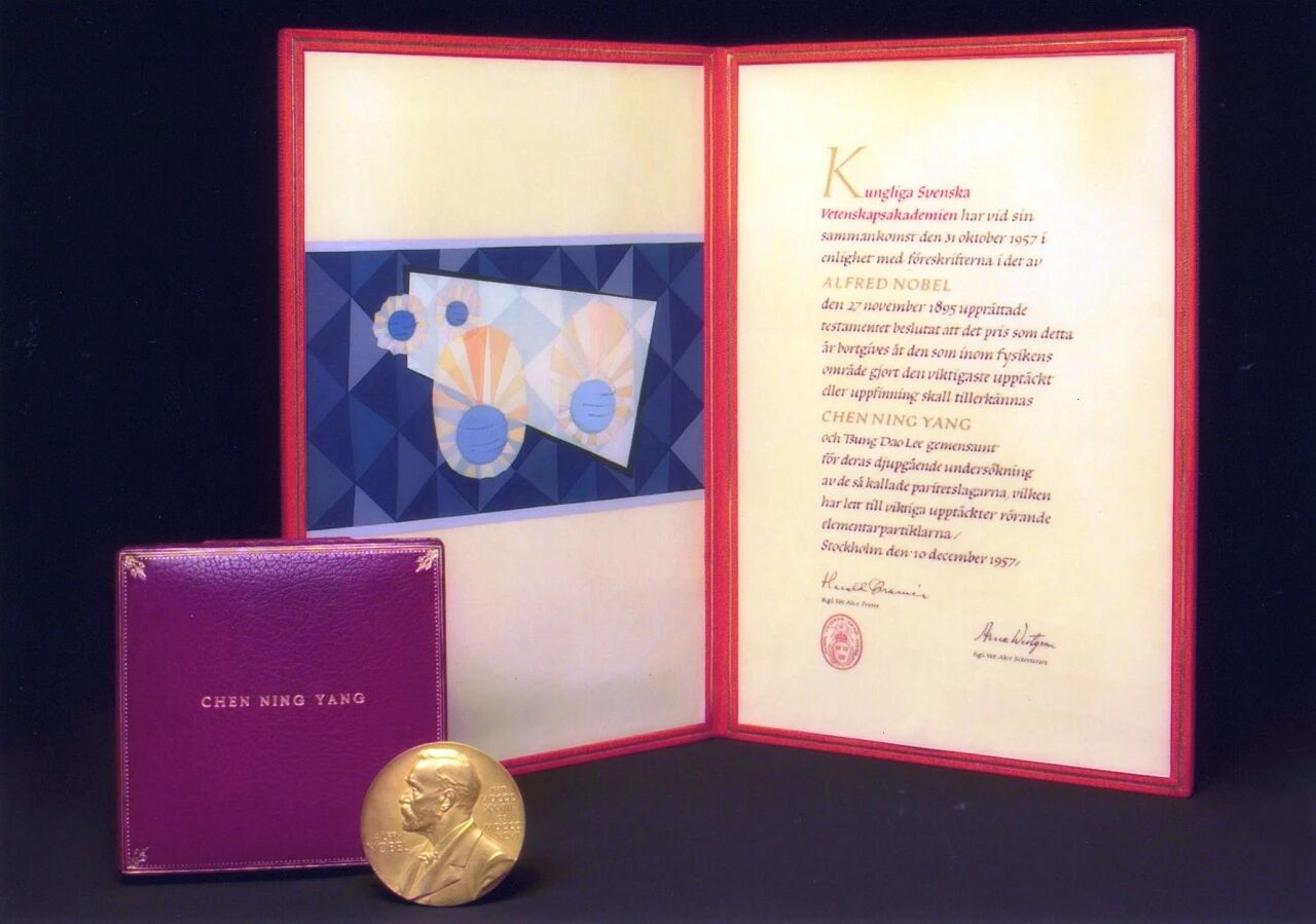 1956年,杨振宁与李政道共同发表论文,提出了在弱相互作用下宇称可以不守恒的思想,并提出了可能的实验检验方案。这个革命性的观念很快被吴健雄等人的实验证实。杨振宁与李政道“因他们对宇称不守恒定律的深刻探索以及由此带来的基本粒子领域的许多重要发现”,获得1957年诺贝尔物理学奖,共同成为最早获得诺贝尔奖的中国人。