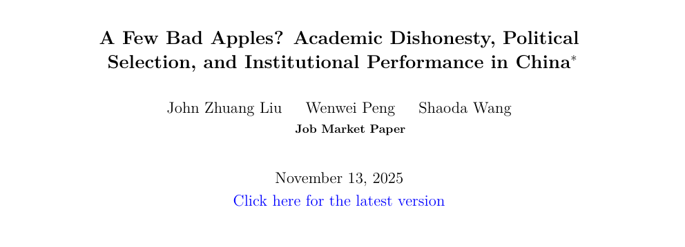 一项中国学者的重磅研究《A Few Bad Apples?》(《只是几个害群之马?》)通过追踪50万研究生的职业路径,揭示了一个令人不安的真相:在学生时代学术不端的人,不仅更倾向于进入体制,而且在体制内晋升得更快。最终,他们的不诚实行为直接拉低了公共治理的质量。