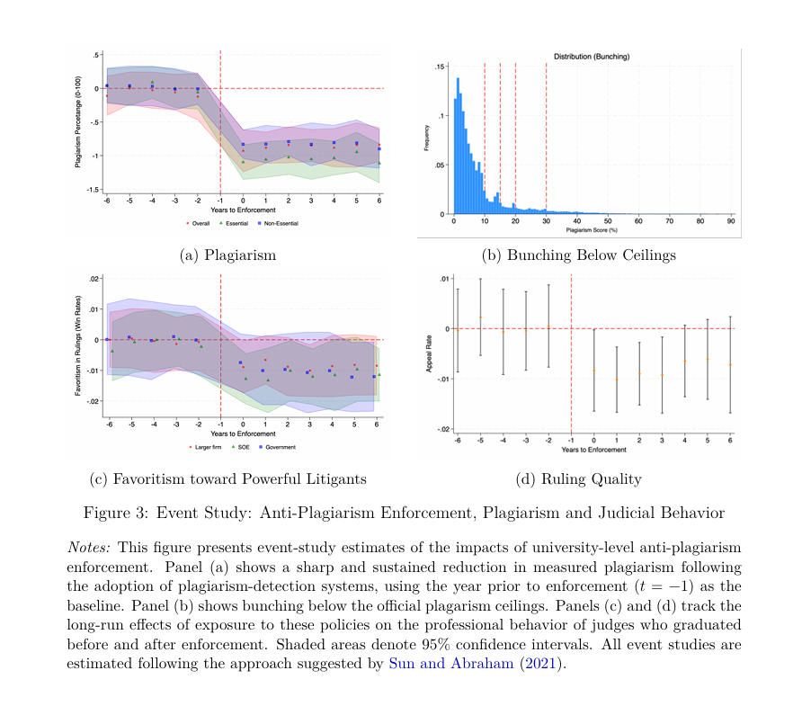 在高校引入严格的查重制度后,不仅学生论文抄袭率显著下降,而且这批经历过“诚信震慑”的学生,在进入公共部门后,其职业行为(如司法判决)也表现出边际上的改善。