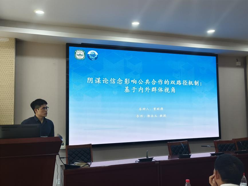 曾昭携的论文题目是《阴谋论信念影响公共合作的双路径机制:基于内外群体视角》。该文首先指出,重大社会危机或结构性转型期往往伴随着阴谋论传播的增加,而这可能进一步影响公共合作。然而,现有研究对此关注有限,结论分歧明显,且多基于西方样本,缺乏跨文化证据。论文指出,基于内外群体阴谋论的视角可以有效解释阴谋论与公共合作间的复杂关系,并提出了“阴谋论信念影响公共合作的双路径模型”:内群体阴谋论信念通过削弱程序公正判断和权威合法性感知,负向预测公共合作;外群体阴谋论信念通过激发群际威胁感知并提升权威合法性感知,正向预测公共合作。论文通过三个研究(共8个子研究)对该模型进行了系统检验,结果发现“双路径模型”的基本假设得到跨文化证据支持。该文为危机管理中的社会心理建设做出了特殊理论贡献,并提供了诸多实践启示。